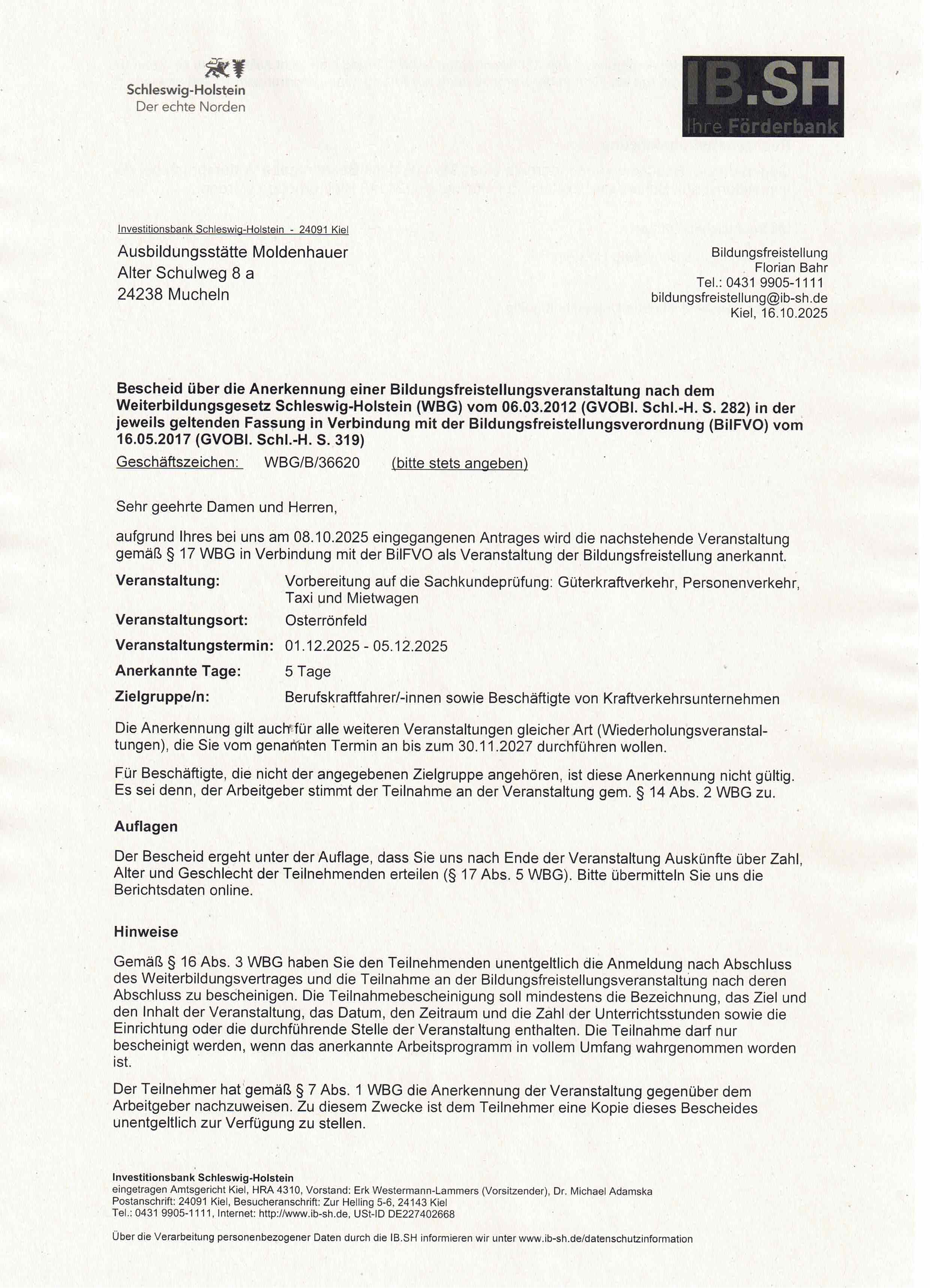 - Vorbereitungslehrgang zur Fachkundeprüfung für den Güterverkehr -